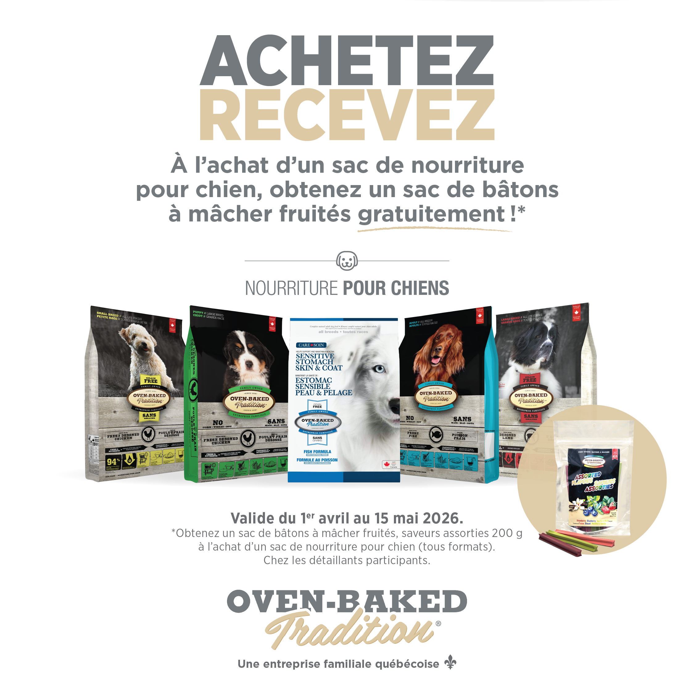 Bâtons dentaires Oven Baked Tradition gratuit à l’achat d’un sac de nourriture chien